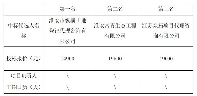 拟确定中标人:淮安市纵横土地登记代理咨询有限公司