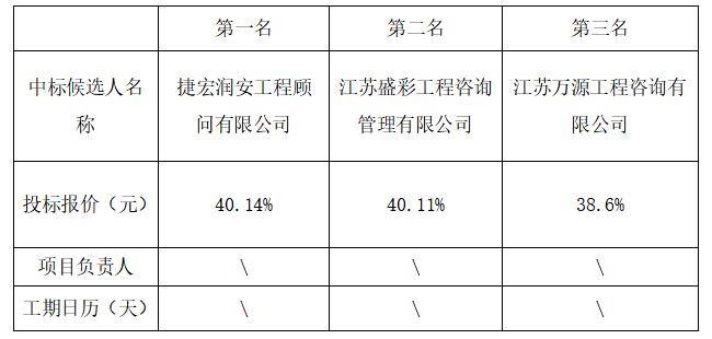 拟确定中标人:捷宏润安工程顾问有限公司
