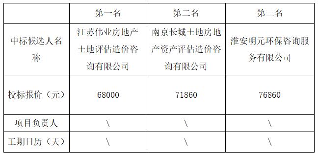 拟确定中标人:江苏伟业房地产土地评估造价咨询有限公司