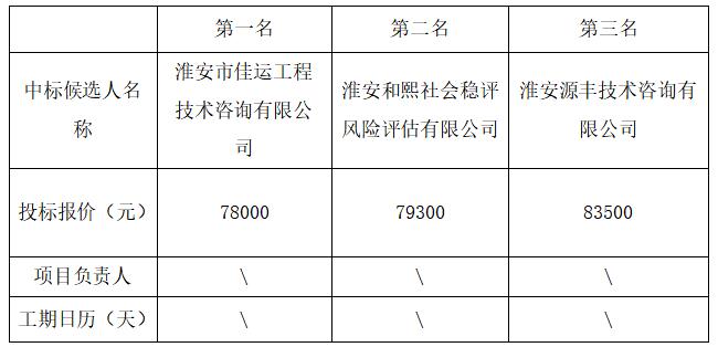 拟确定中标人:淮安市佳运工程技术咨询有限公司
