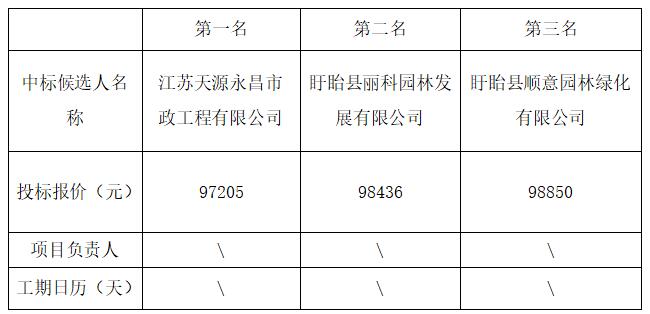 根据工程招标投标的有关法律、法规、规章和该工程招标文件的规定,盱眙县宁淮产业园朱雀湖公园景观、标识提升项目的评标工作已经结束,中标候选人已经确定。本项目采用 经评审的最低投标价法 的评标办法,现将中标候选人公示如下: