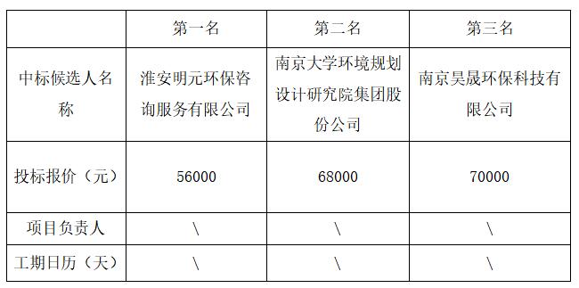 拟确定中标人:淮安明元环保咨询服务有限公司