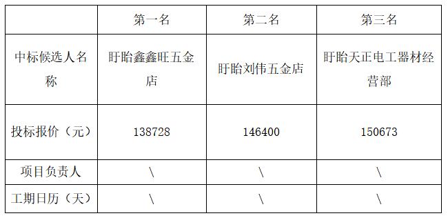 拟确定中标人:盱眙鑫鑫旺五金店