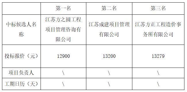 拟确定中标人:江苏方之圆工程项目管理咨询有限公司