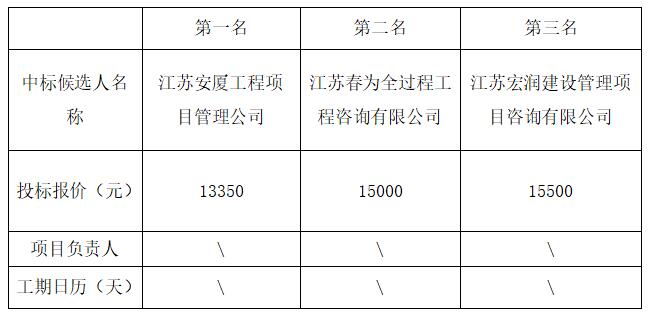 拟确定中标人:江苏安厦工程项目管理公司