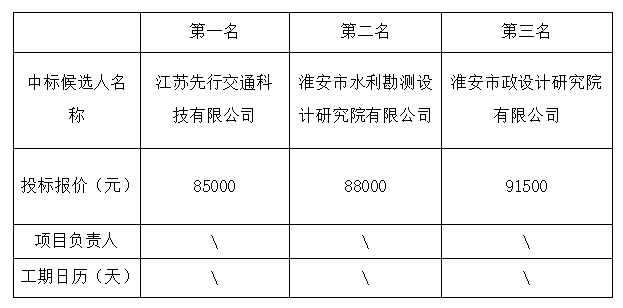 根据工程招标投标的有关法律、法规、规章和该工程招标文件的规定,盱眙县城乡供水一体化工程-清水管道(二水厂-桂五镇)305县道、235国道安全评估项目的评标工作已经结束,中标候选人已经确定。本项目采用 经评审的最低投标价法 的评标办法,现将中标候选人公示如下: