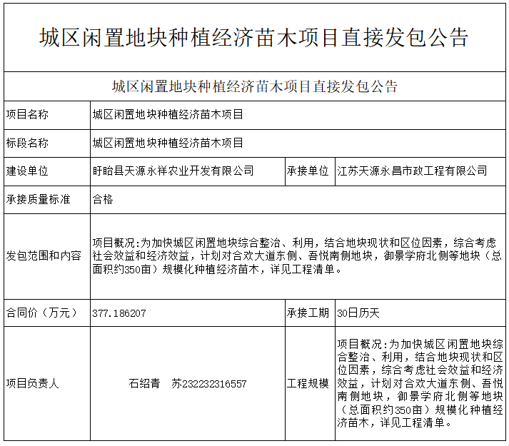 城区闲置地块种植经济苗木项目直接发包公告