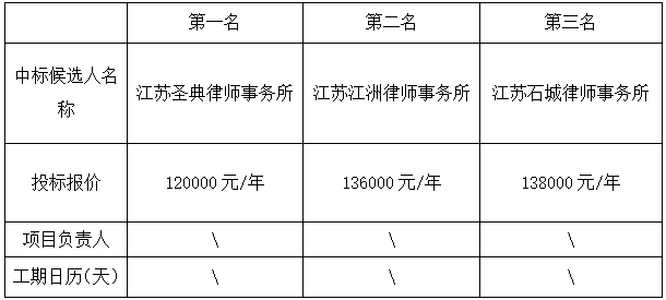 拟确定中标人:江苏圣典律师事务所