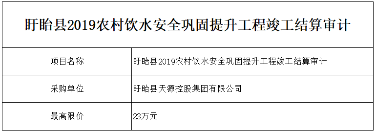 盱眙县2019农村饮水安全巩固提升工程竣工结算审计