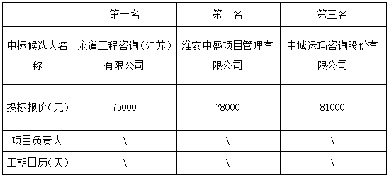 拟确定中标人:永道工程咨询(江苏)有限公司