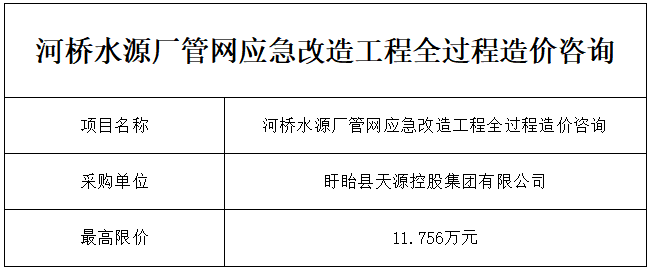 河桥水源厂管网应急改造工程全过程造价咨询