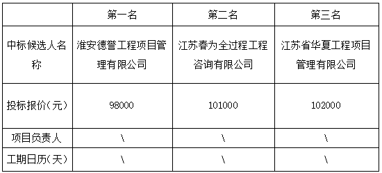 拟确定中标人:淮安德誉工程项目管理有限公司