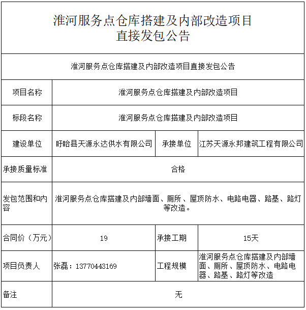 淮河服务点仓库搭建及内部改造项目直接发包公告