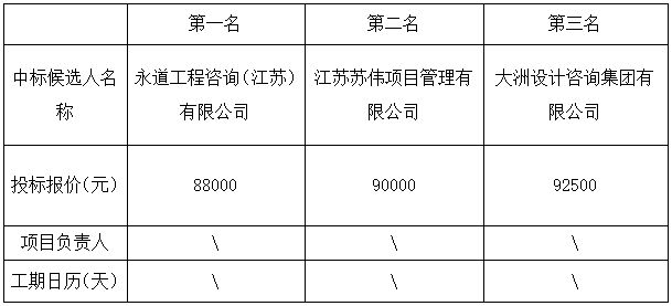 拟确定中标人:永道工程咨询(江苏)有限公司