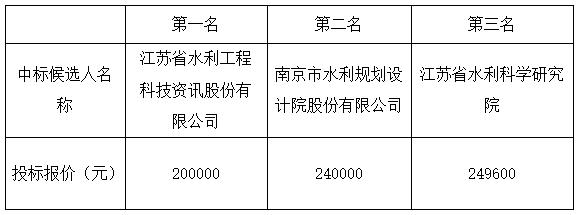 拟确定中标人:江苏省水利工程科技资讯股份有限公司