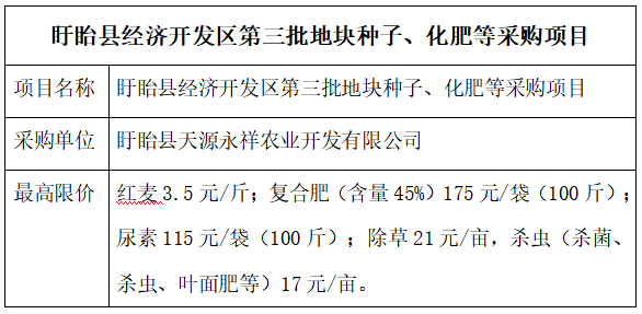 盱眙县经济开发区第三批地块种子、化肥等采购项目