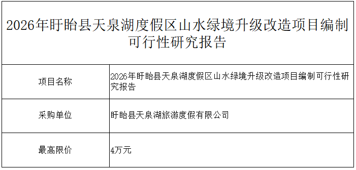 2026年盱眙县天泉湖度假区山水绿境升级改造项目编制可行性研究报告