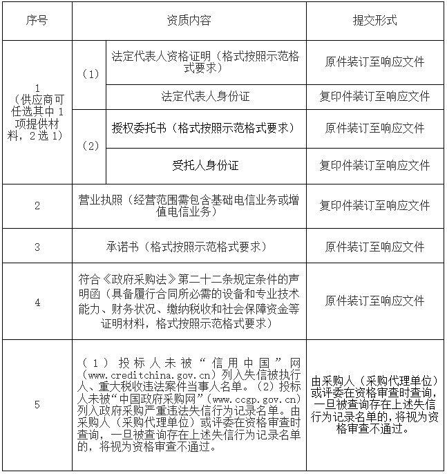 说明:本次单一来源采用资质后审方式,在整个采购过程中,由采购人组织评审小组对投标人的资质进行审查,若发现投标人的资质条件不符合单一来源文件要求,可随时取消其投标或中标资格。